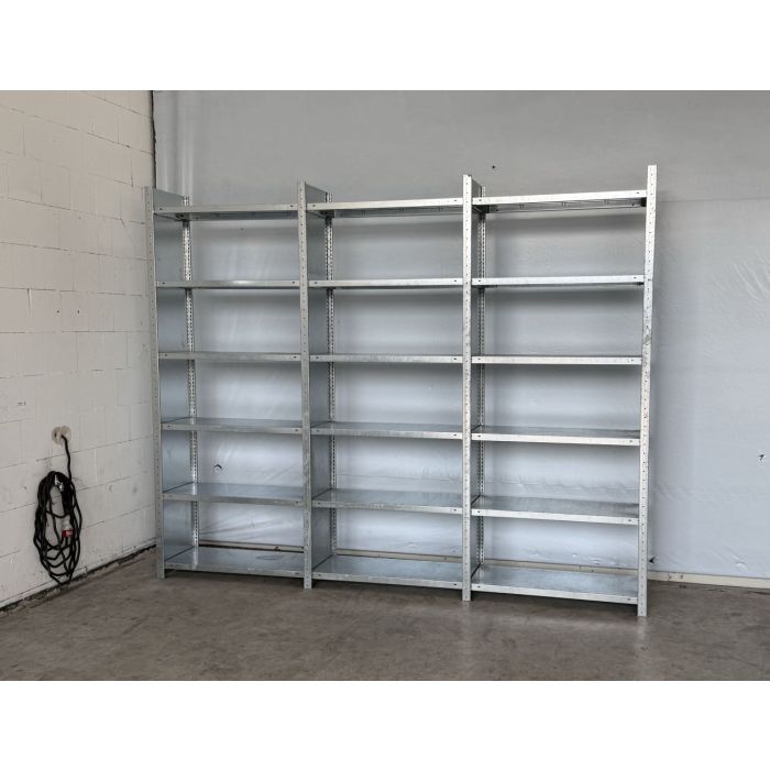 Fachbodenregal Magazinregal, gebraucht | META CLIP | Gesamthöhe: 2.475 mm | Gesamttiefe: 435 mm | Vollwand | Regallänge: 3,20 lfm.